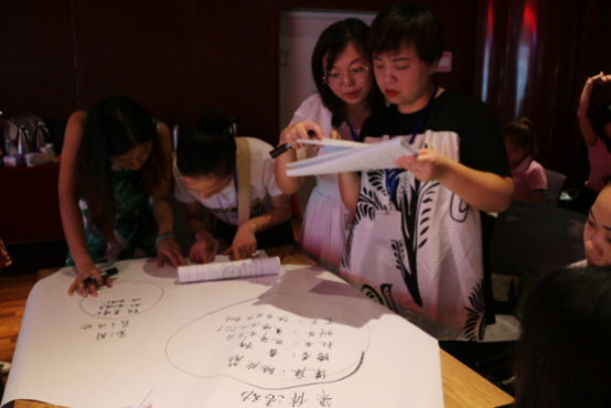 光说不练假把式。在观摩活动之后,与会老师上台亲身学习操作华师幼教云平台,并围绕大班6月主题“我会想念你”进行自主活动的创设,各小组成员思维积极碰撞,自主活动创设异彩纷呈。