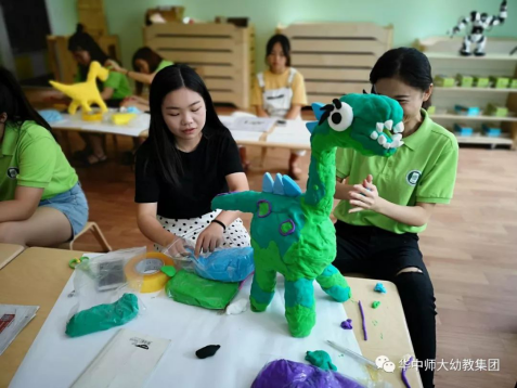 探索、实践、研究,立足华师文化,整合学校资源,为引领合办园教师进一步理解“艺术沁心”的特色理念,更为科学有效地开展教育教学工作,2018年盛夏7月,华师幼儿园的美术专职教师分别为华师附属黄梅梦想城幼儿园和华师附属斯迪姆幼儿园开展了艺术特色课程的实施与指导活动。
