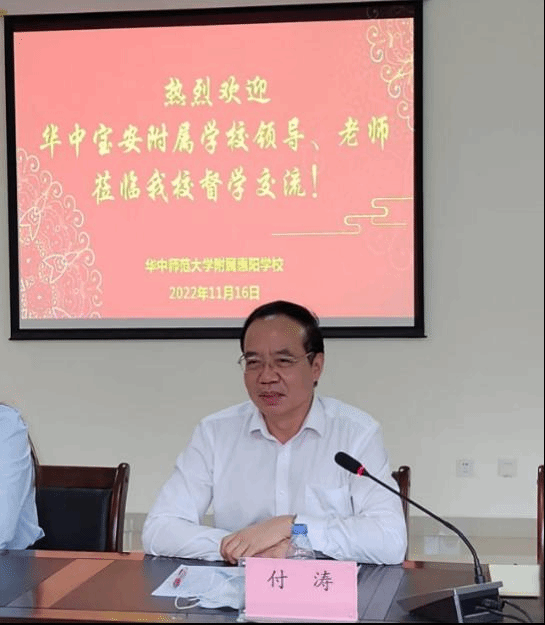 附属惠阳学校付涛校长对万小龙主任一行督学专家们的到来表示热烈欢迎,并对此次“四个一”督学活动予以高度评价,表示将“以学促行”,学习宝安附属学校先进的教育理念、科学的课堂教学管理方式、优秀的教学方法,发挥平台优势、交流互鉴,教学相长,教研共进。
