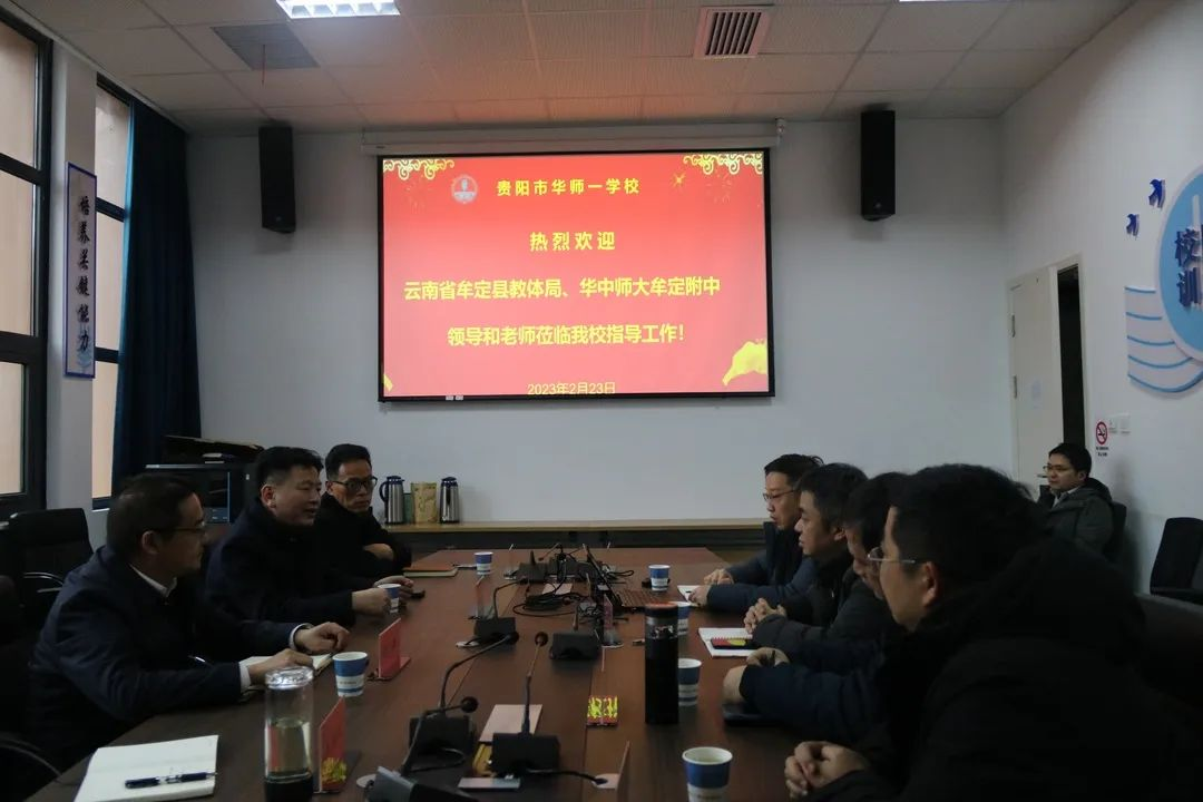 教育集团讯(通讯员 吴迪 张旭)2月24日-25日,在华中师范大学教育集团的组织下,华中师范大学教育集团总校长吴晨光,云南牟定县教体局主要领导,华中师范大学大理附属中学、华中师范大学牟定附属中学,贵州省仁怀市一中、五中、六中的领导和教师前往华中师大一附中贵阳学校交流学习、参观校园、了解办学情况、借鉴办学经验。华中师大一附中贵阳学校理事长张振宇、校长杨卫平、理事汪宇涛等学校领导热情接待,陪同参观。