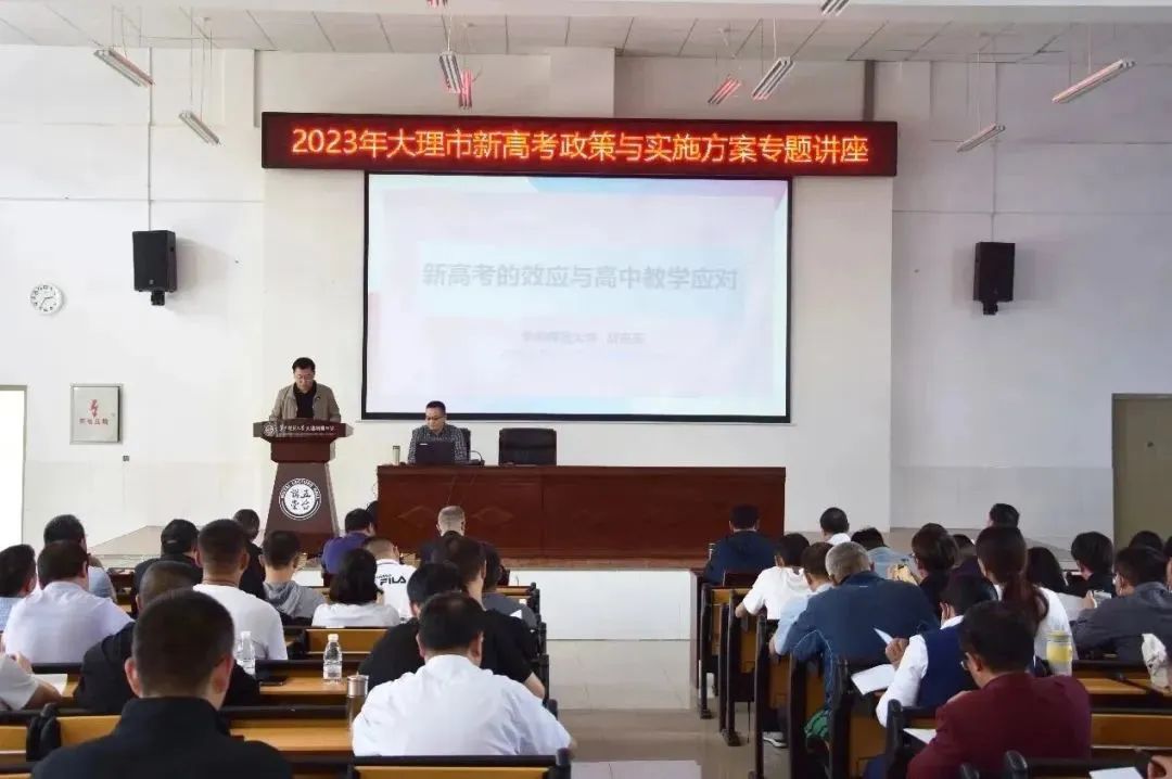 5月19日,华中师范大学文学院博导、考核专家组组长胡向东教授,专门为大理市内辖区高中学校作《新高考的效应与高中教学应对》专题报告,来自大理市辖区范围内的十几所高中学校的校长、骨干教师以及教体局、州教科所领导等认真聆听了这场专业报告,有老师表示“这是几年以来听到的,对新高考的分析最透彻,对我们一线教师最有启发的一场报告。”