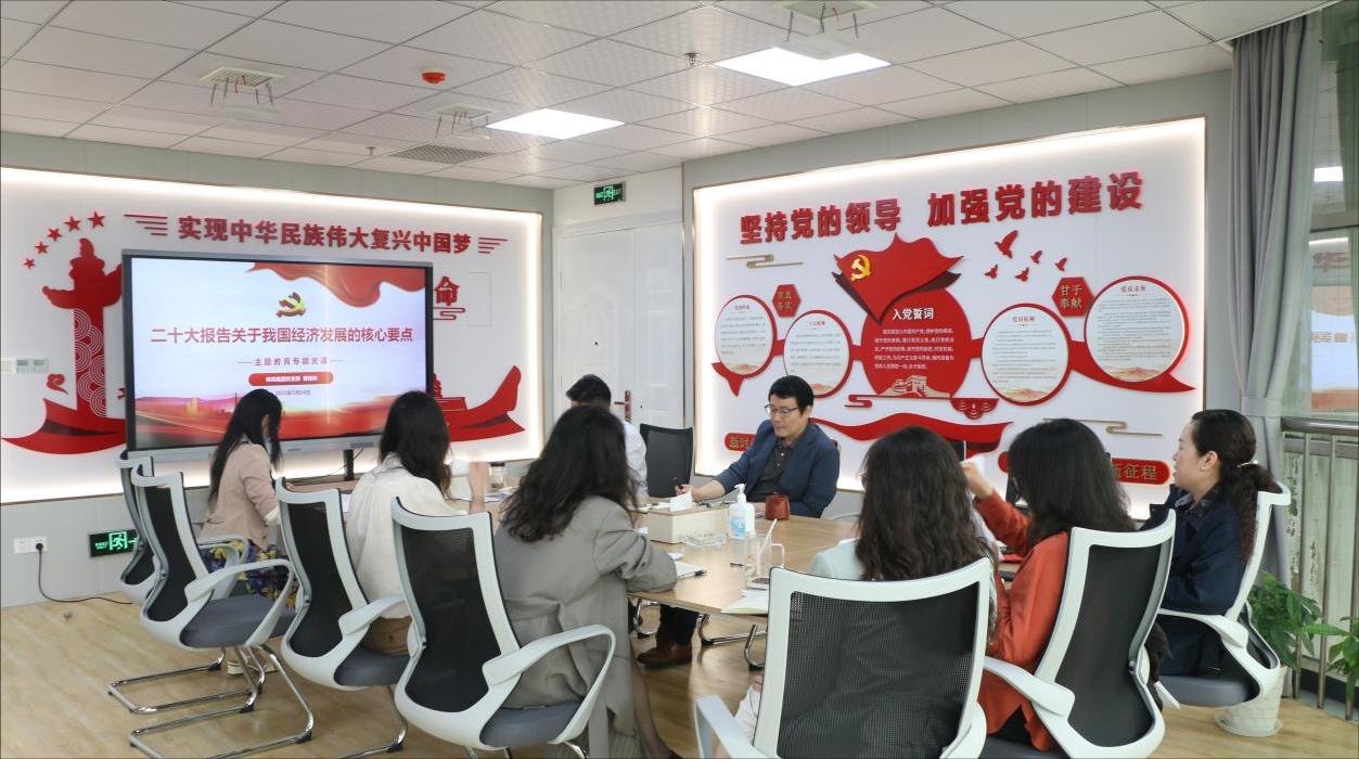 曹青林同志以《二十大报告关于我国经济发展的核心要点》为题,分析二十大报告的核心要点及关于经济发展的关键论述对于我国经济发展的影响,并进一步分析当前国内外经济形势,通过引用调研数据,阐明我国未来五年经济发展方向。