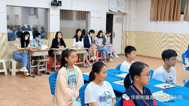 早晨伊始,学校的小讲解员们引导远道而来的专家们游览校园及特色功能室。一路上,他们自信大方地向专家们介绍着学校的办学理念、育人目标及特色场馆。专家组对学校宜人的教育环境、先进齐全的软硬设施以及与华师一脉相承的文化氛围表示高度认可。