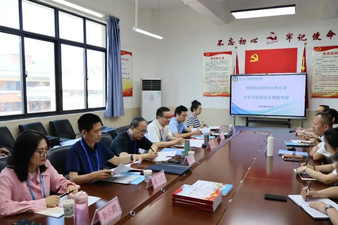 教育集团讯(通讯员 鄢文津 张旭)6月8日至9日,华大教育集团派出由华中师大文学院教授胡向东、武汉小学校长李强、华师一附中东原启城学校校长陈先钧、省教科院中学物理教研员苏航、华大教育集团评测部李小鹏、鄢文津组成的6人评估考核组对华中师范大学附属荆州高新区学校开展办学6年的示范性评估,对段远景校长进行聘期考核。