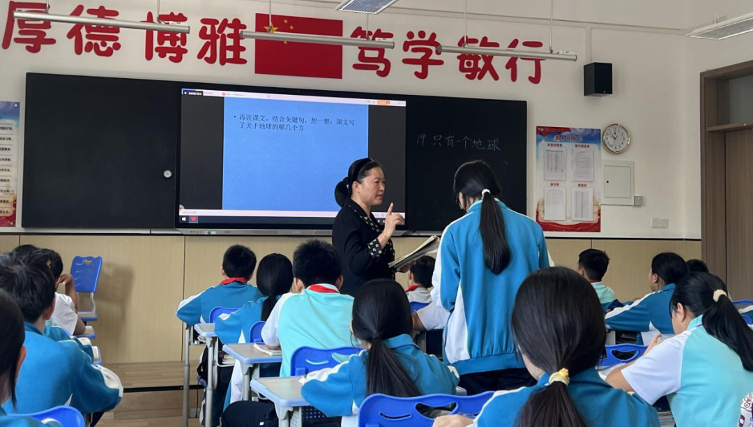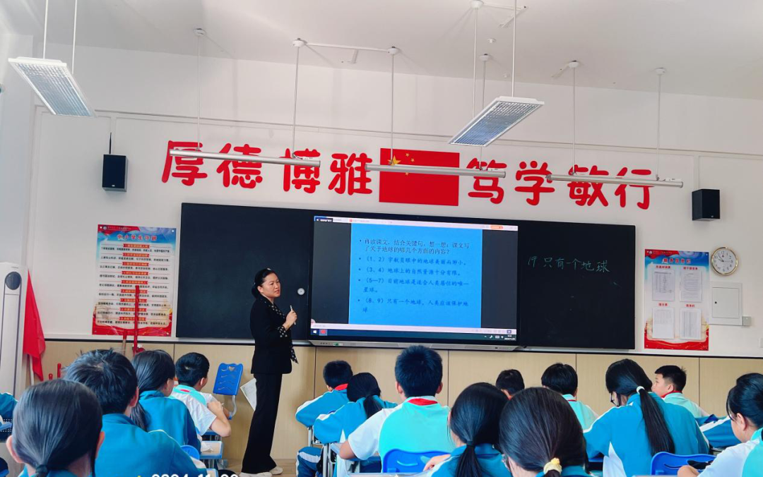 黎安滨海胡娇娥老师执教说明文《只有一个地球》,胡老师以大单元的概念进行导入,强调本单元要掌握的语文要素:抓住关键句,把握文章的主要观点。引导学生通过自由读文、找关键词、做批注、赏析句子等方法学习文章,思路清晰、目标明确。