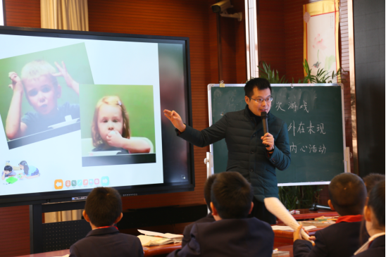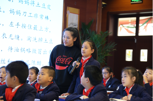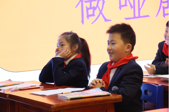 随后,董尚元老师带来的是四年级活动写作展示课《记一次游戏》。课前兼具启发性与趣味性的游戏视频营造出轻松活泼的课堂氛围,以哑剧的方式“我演你来猜”的师生互动,创造性生成了写作情境,游戏前、游戏中、游戏后的逐层感悟交流,步步引领学生梳理写作思路,精彩的课堂小练笔环节,演练中评讲、评讲后总结、总结里反思、反思后修缮,董老师层层诱导,将“好文章是改出来”的经验之谈深深烙入学生思维。