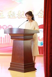 大会于一片国歌声中拉开序幕,朱莉副校长就我校思想道德建设工作实际情况发表讲话,并明确此次主题教育活动的目的。她说道:“今天,家长朋友们与学校一起共同探讨师德师风话题,共同见证学校的成长,共同感受教师教育路上的所思所悟,通过师德师风主题教育活动,架起家长与老师之间互动互通的桥梁,共同为孩子们创造一个和谐共进、快乐共享的学习和生活环境。”