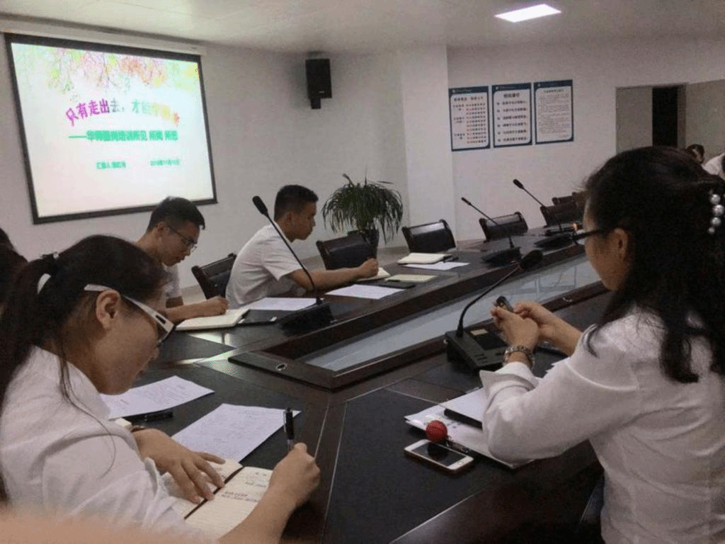 七年级英语教师宋明珠从教师的专业能力、思想认识方面进行汇报。她在此次培训中更加坚定了自己的教育理想和信念,认为钻研教材必须要从整体出发,从多角度分析,并确切地把握知识重难点。教学中要针对不同层次学生的信息反馈,有效的调整教学内容和方法,提高学生课堂积极性。
