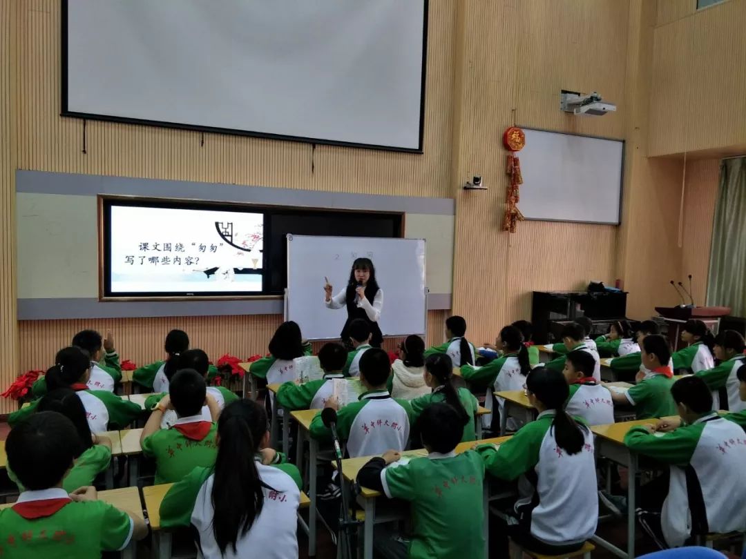 首先,华中师范大学附属小学前来督学的两位骨干教师给各位老师带来了两节精彩的示范课。彭静老师执教的《匆匆》一课,注重学生的朗读训练,语用的训练,用诗意的语言引导学生进行朗读,使学生的朗读水平和语言表达能力得到了有效地训练。