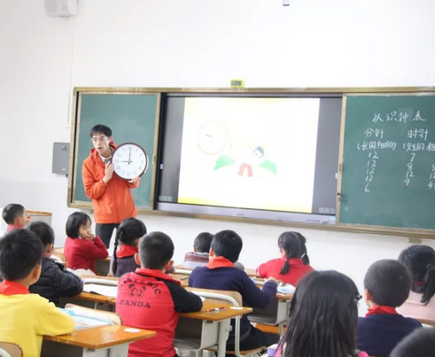 紧接着,学校两位青年老师也十分珍惜名师观课指导的机会,一展风采。关佳秀老师执教的《雪地里的小画家》,利用多媒体、实景贴图让学生直观感受课文,和蔼的教态、抑扬顿挫的语调,循序渐进,引导学生突破对生字、标点符号的语境应用以及词语积累。黄海棠老师执教“认识钟表”,利用实物钟表,正面突破“整点”、“半点”这个教学难点。精心设计的课堂练习,体现了趣味性和层次性、新知性与固性相结合的原则,取得了较好的效果。