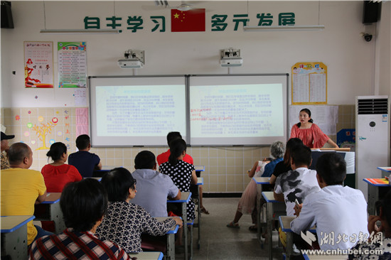 随后,家长们来到各班教室,参加主题家长会。各班教师对本学期学生的学习情况、在校托管的表现作了简单总结,结合学科特点对学生的暑假学习提出了建议。班主任们在发言中除重申学生的假期安全教育外,就文明城市创建宣传工作再次向家长们进行了强调,希望家长们和孩子一起学习《鄂州市中小学生9个良好日常文明礼貌习惯》和《鄂州市教育局文明创建十问知识问答》,进一步加强孩子的日常行为规范和文明礼仪教育,提升学生文明素质,实现“教育一个学生,带动一个家庭,影响一个社区,文明整个社会”的目的,在全社会形成良好创建氛围。