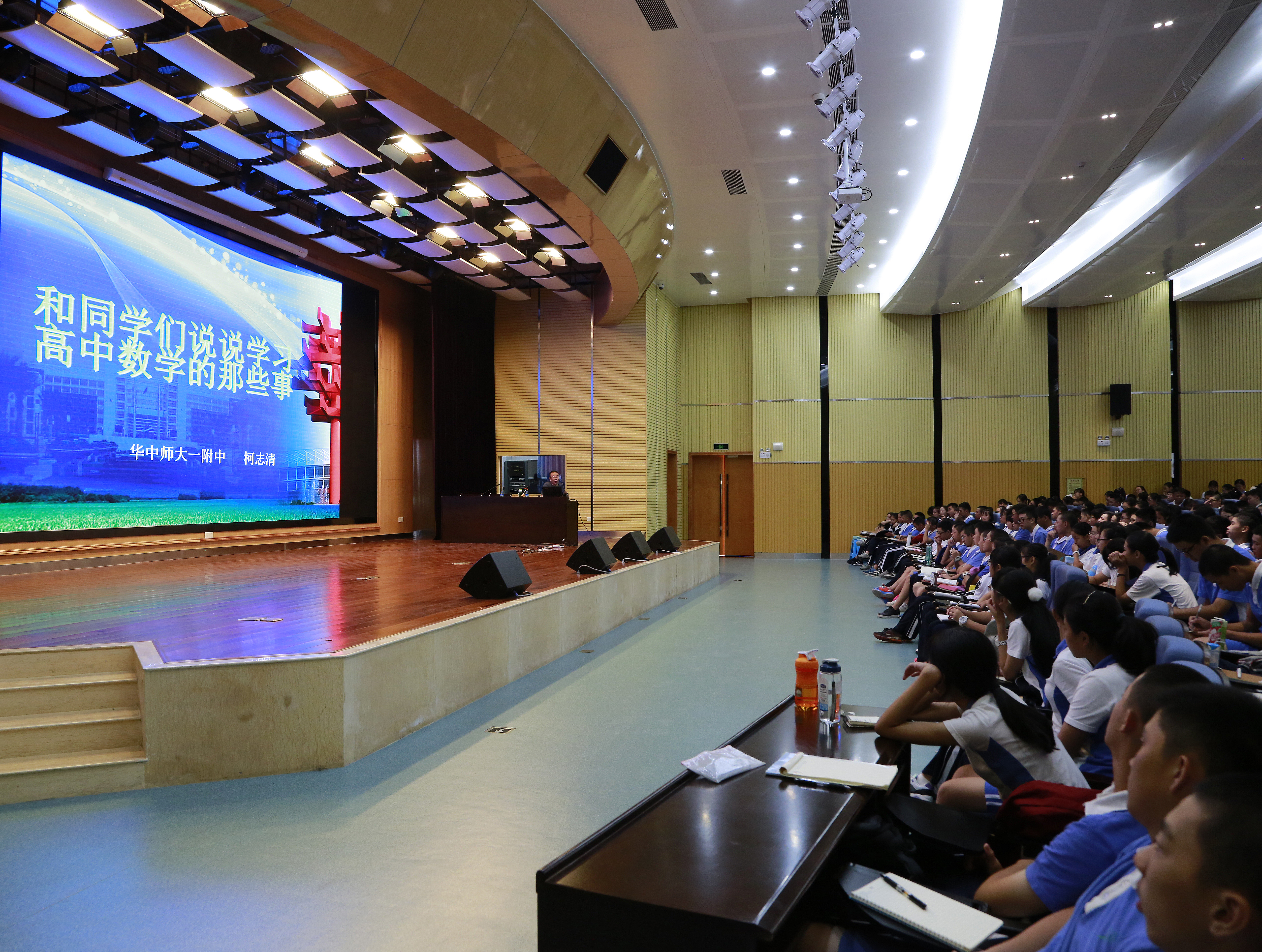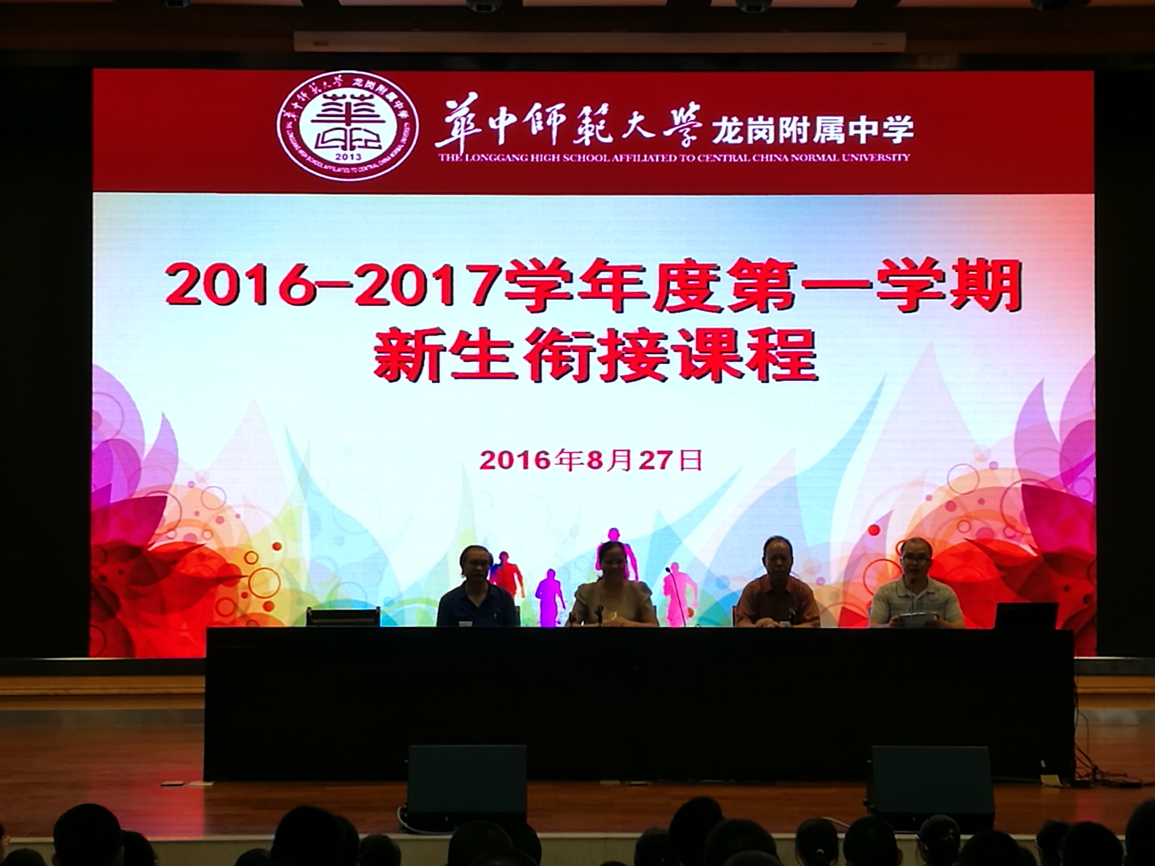 8月28日至29日,华中师大龙岗附中开展了2016级新生特色衔接课程活动。来自华中师范大学、华中师大一附中和武汉市教育科学研究院的八名专家,从文学创作、高中生涯、学法辅导和学习技术等方面为936名新生及全体教师带来了精彩的讲座。