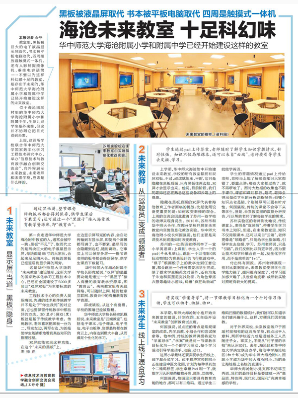 《厦门日报》2016年8月30日,以大篇幅版面报道了我校国家数字化学习工程技术研究中心与当地合作的未来教室项目。
