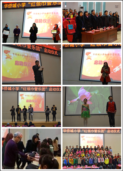 在2015年伊始,期盼已久的华侨城小学“红领巾管乐团”启动仪式正式在五楼报告厅隆重举行。团市委少年部部长、市少工委副主任向娅丽部长和东湖生态旅游风景区文化教育局党总支副书记孙继安书记、大雅乐盟教育咨询有限公司董事长李松、东湖风景区文化教育局综合一科李存红科长、华侨城小学执行校长王晓红等领导出席了启动仪式。仪式上,团市委向娅丽部长、大雅乐盟李松董事长为学校颁发了“红领巾管乐团”的授牌和授意书,所有领导和嘉宾为“红领巾管乐团”的团员们赠送了乐器,执行校长王晓红代表华侨城小学致以了衷心的感谢。为了庆祝这一盛事,大雅乐盟专业教师们和华侨城小学的孩子们带来了一台精彩纷呈的节目。