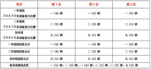 此次运动会小学有以下项目:60米、垒球、一分钟跳绳、亲子游戏、30米迎面接力等;初中组有以下项目:100米、200米、400米、女子800米、男子1000米、一分钟跳绳、60米迎面接力、立定跳远、铅球等。